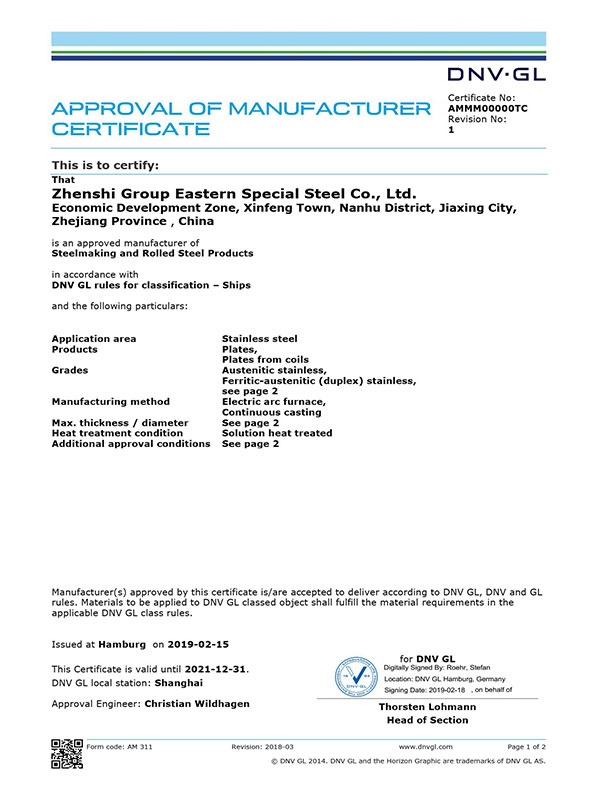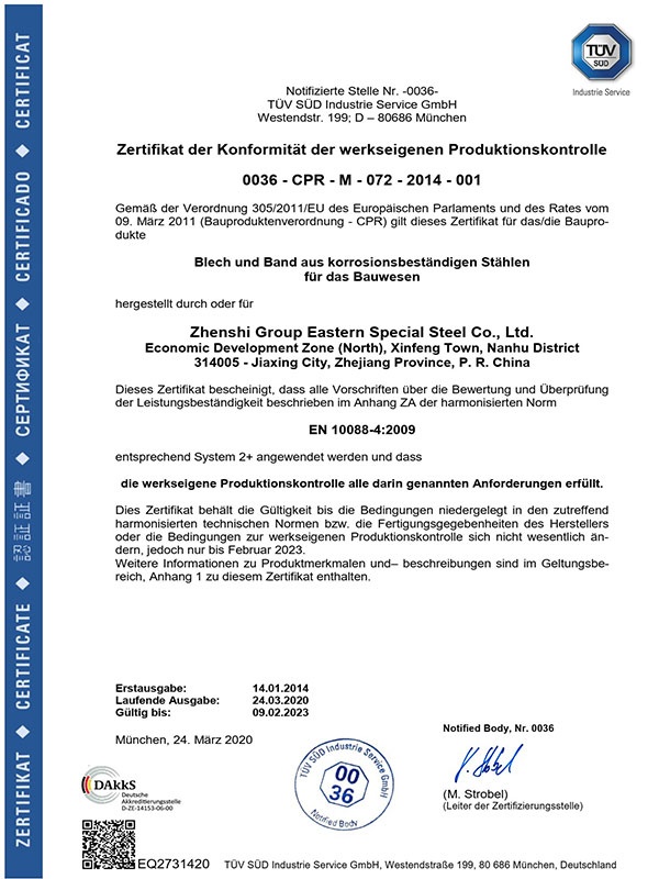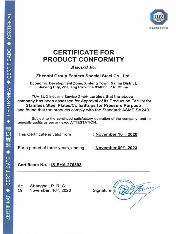 The company has an annual production capacity of 700,000 tons of stainless steel coils. The products are widely used in pressure vessels, special ships, petrochemicals, food machinery, paper printing and dyeing, automotive appliances, energy transportation, building decoration and other fields.