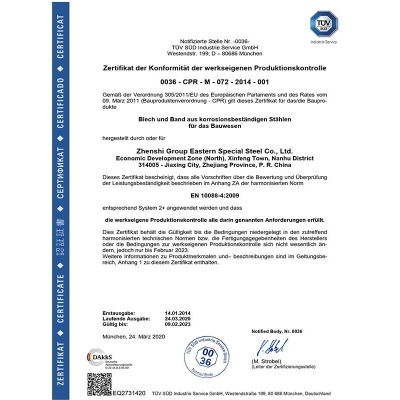 Eastern Special Steel owns CONSTEEL electric furnace, AOD furnace, refining furnace, continuous slab caster, 1800 furnace coiling mill and medium plate finishing equipment imported from Italy, continuous backwashing production and flattening unit. Advanced technology and technical equipment have laid a solid foundation for energy saving, emission reduction, low consumption, safety and high-quality production. The company is committed to research and insists on providing users with "high, refined and rare" stainless steel sheets, including duplex stainless steel, super duplex stainless steel, super austenitic stainless steel and heat-resistant austenitic stainless steel.