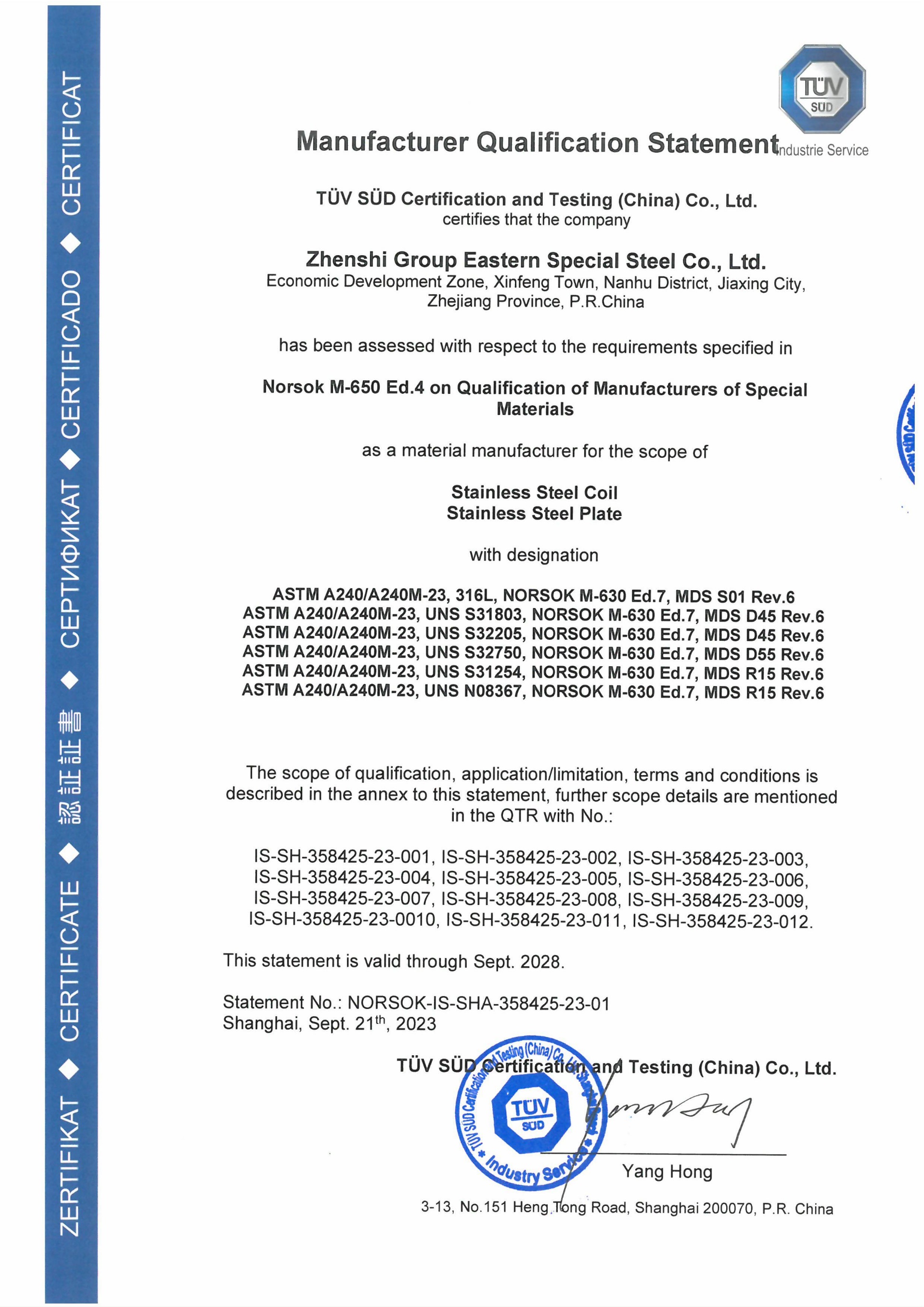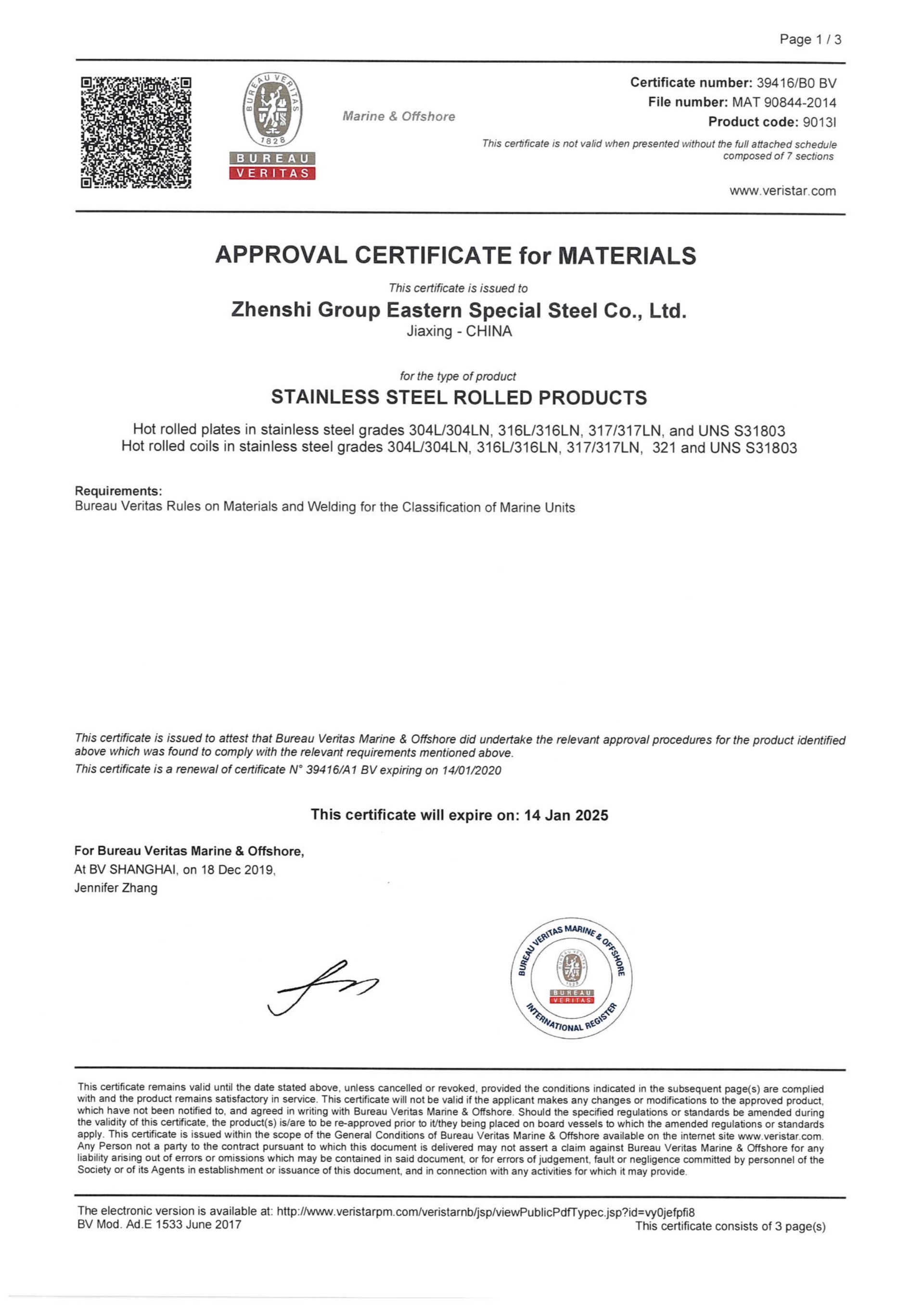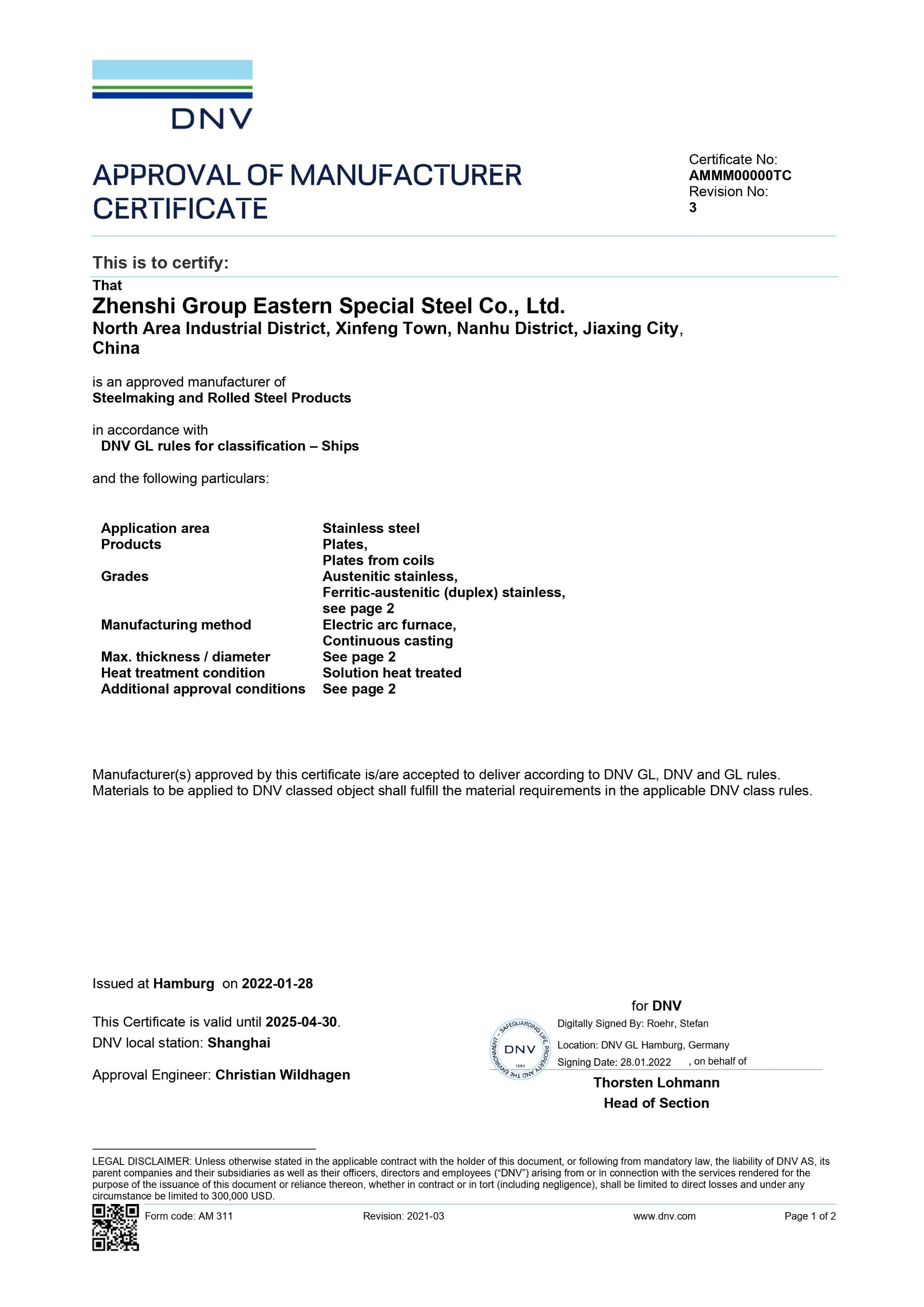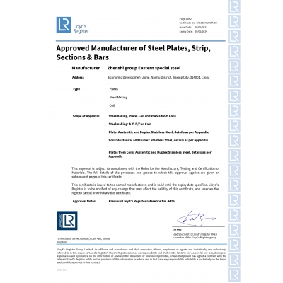 同時還取得了中國、美國、法國、挪威、德國、英國等[船級社認證]。
