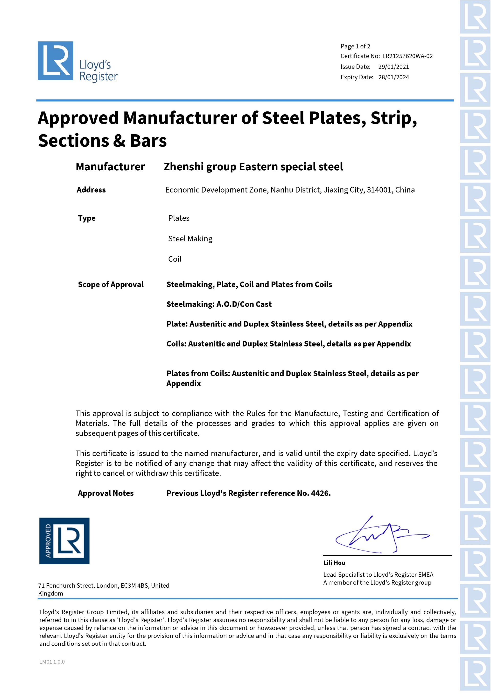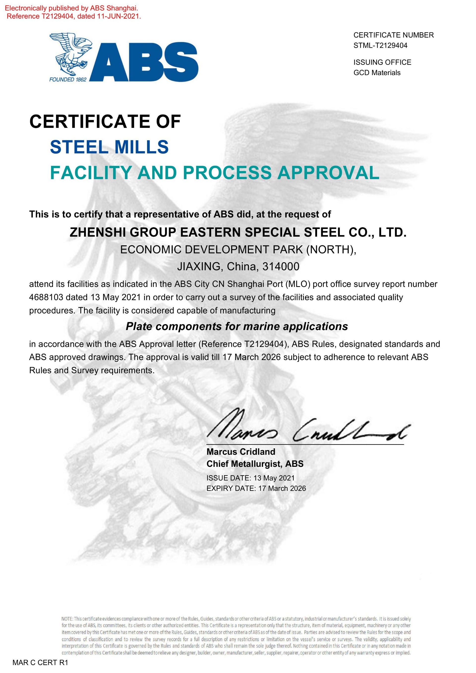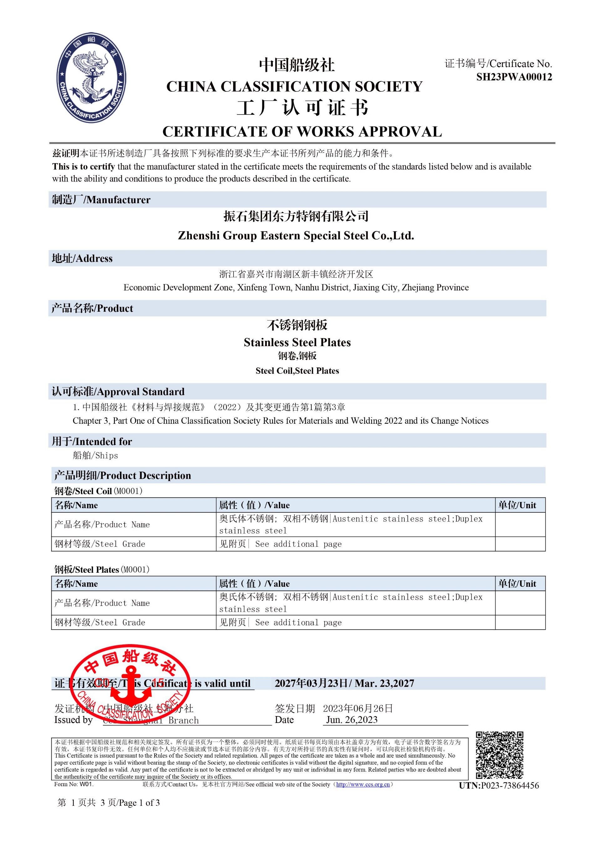 同時還取得了中國、美國、法國、挪威、德國、英國等[船級社認證]。