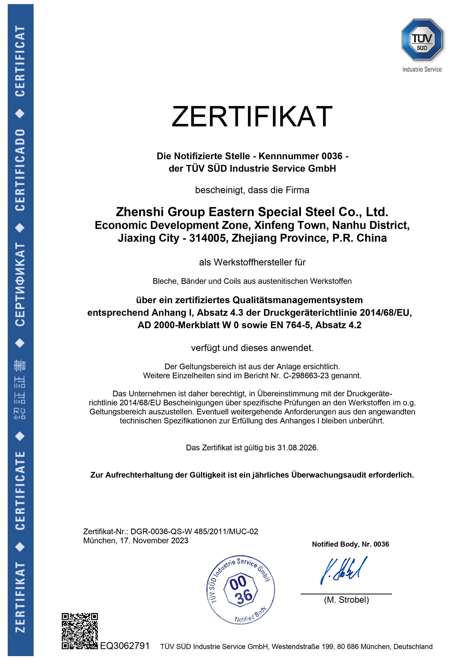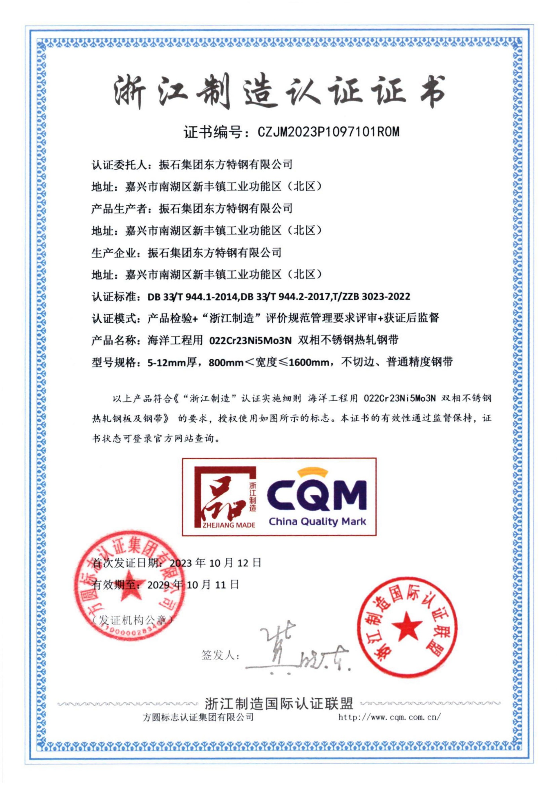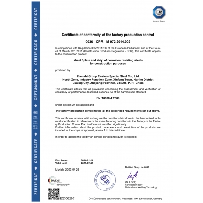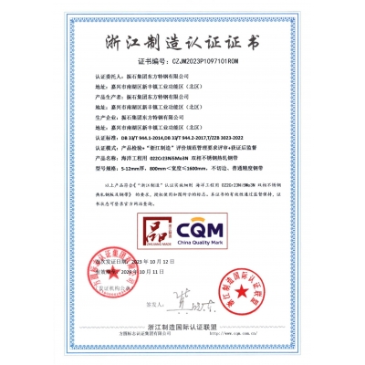 東方特鋼先后通過了[ISO9001:2015質量管理體系],[GJB 9001C-2017質量管理體系]認證,